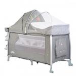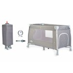 Patut pliabil Cangaroo ISleep Grey 120x60 cm cu 2 nivele,sistem de leganare,roti cu frane,Organizator cu 3 nivele,Saltea pliabila,Masuta de infasat,Bara jucarii,Inele,Geanta transport si Capotina cu plasa insecte incluse