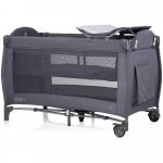 Patut pliabil Chipolino Bella Anthracite cu doua nivele, intrare laterala cu fermoar, 2 roti cu frane, saltea de infasat, carusel muzical, geanta pentru transport, buzunar si organizator accesorii