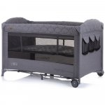 Patut pliabil Chipolino Merida graphite linen cu laterala culisanta