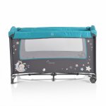 Patut pliabil de calatorie 2in1 Moni Sleepy New Turcoaz 120x60cm cu 2 nivele,roti cu blocare,usa de acces cu fermoar,laterala cu plasa de ventilatie,pliabil compact,saltea pliabila,bara cu jucarii,saltea de infasat si geanta