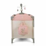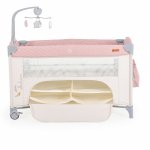 Patut pliabil de calatorie 3in1 Cangaroo Indiana Pink cu 2 nivele, laterala culisanta, organizator haine cu 4 compartimente, segmente plasa de ventilatie, geanta accesorii, saltea si carusel