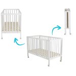Patut pliabil din lemn pentru copii Cangaroo Nova 124.5x65x86 cm, somiera reglabila pe 3 nivele de inaltime, 4 roti cu sistem de blocare, materiale si vopsele sigure
