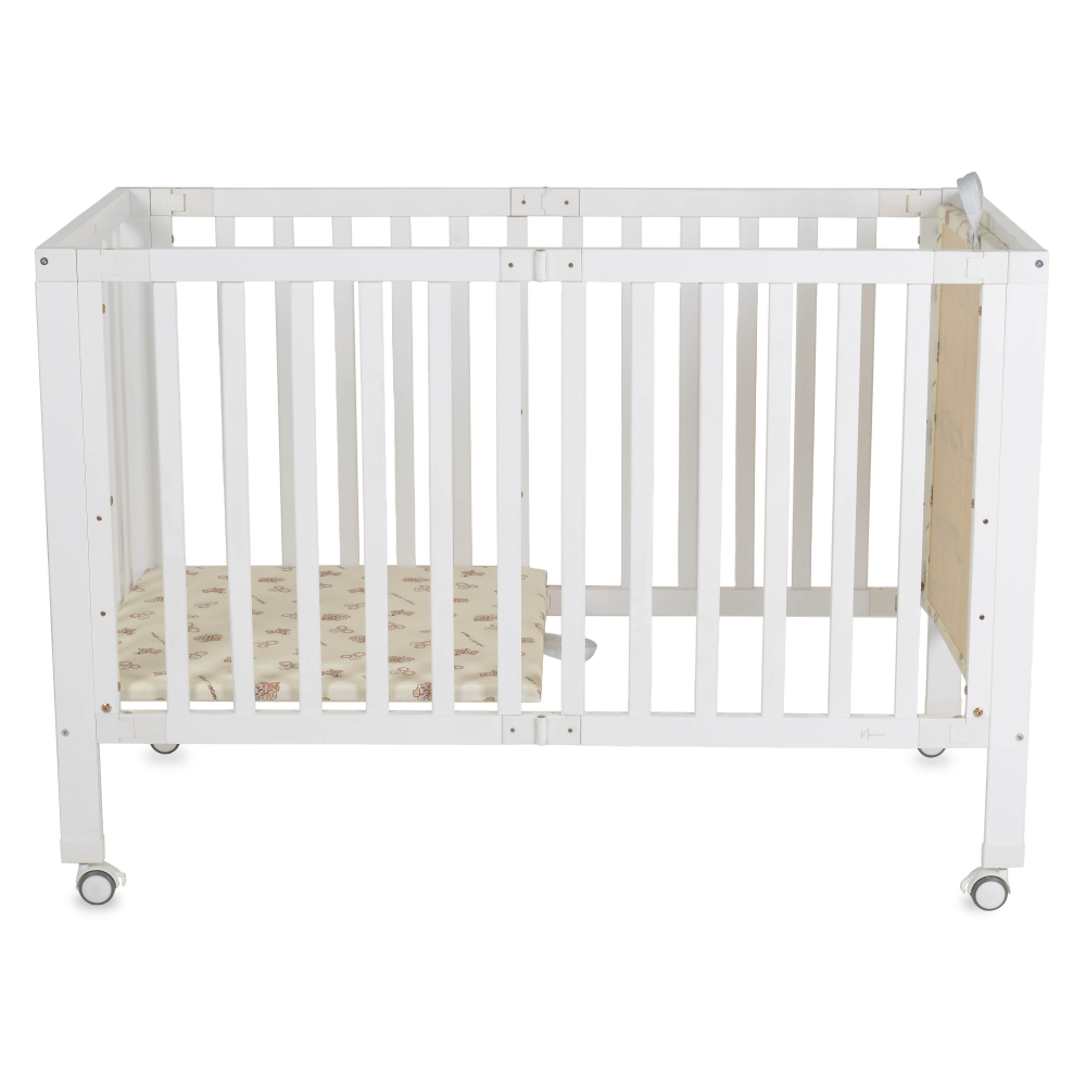 Patut pliabil din lemn pentru copii Cangaroo Nova 124.5x65x86 cm, somiera reglabila pe 3 nivele de inaltime, 4 roti cu sistem de blocare, materiale si vopsele sigure