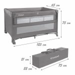 - Un spatiu de odihna si somn confortabil pentru copilul tau, pe care il puteti ajusta in functie de varsta datorita celor doua inaltimi ale saltelutei. Nivelul superior este destinat bebelusilor pana la aprox. 6 luni (max. 9 kg), nivelul inferior pentru copii pana la 3 ani (max. 15 kg).