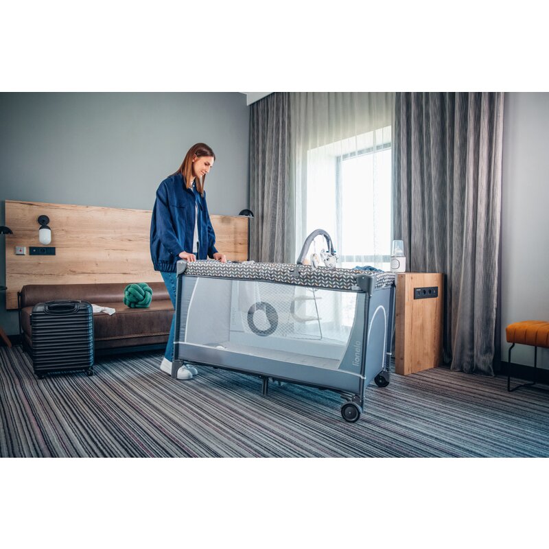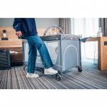 Fiind conceput pentru calatorii, patutul este usor de pliat si apoi de deschis. Odata pliat, poate fi transportat fara efort, chiar si la etaj sau la bunici.