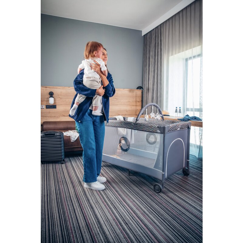 • Echipament: Saltea, Masa de infasatat cu organizator, Bara cu jucarii, Geanta transport;