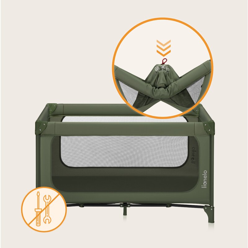 Lionelo Jasmin Easy Fold este un patut de calatorie modern, dotat cu un sistem inovator de pliere rapida.