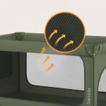 Laturile din plasa asigura o circulatie optima a aerului si permit parintilor si copilului sa mentina contactul vizual.