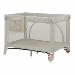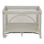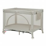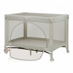 Patut pliabil, Lionelo, Laura, 102 x 74 cm, Cu doua nivele, Functie de tarc, Cu roti, Include salteluta si geanta de transport, Pereti din plasa, Deschidere laterala, Pana la 15 kg, 0 luni +, Bej
