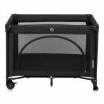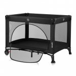 Patut pliabil, Lionelo, Laura, 102 x 74 cm, Cu doua nivele, Functie de tarc, Cu roti, Include salteluta si geanta de transport, Pereti din plasa, Deschidere laterala, Pana la 15 kg, 0 luni +, Negru