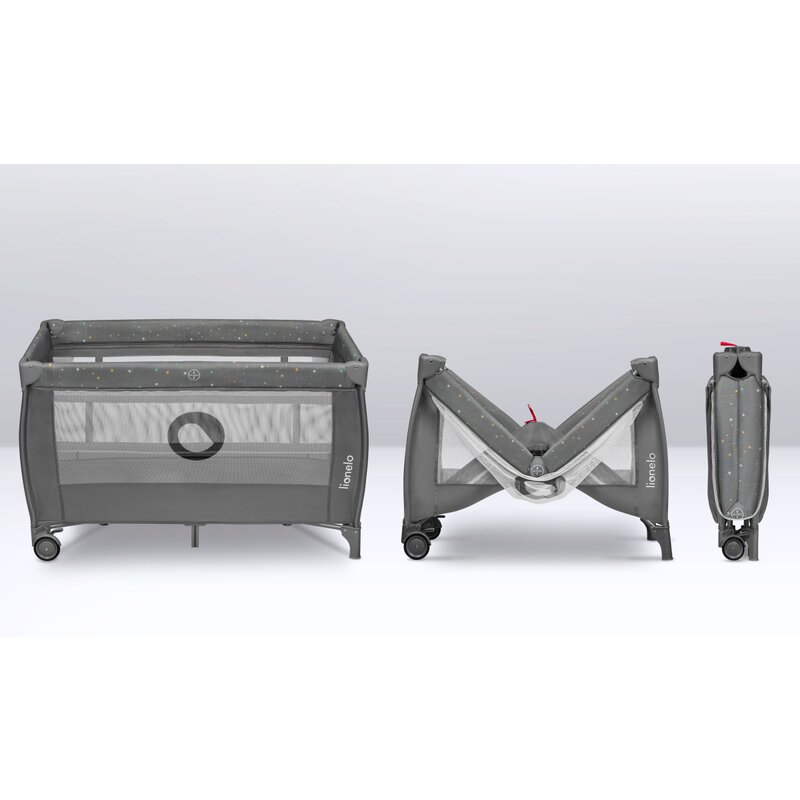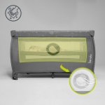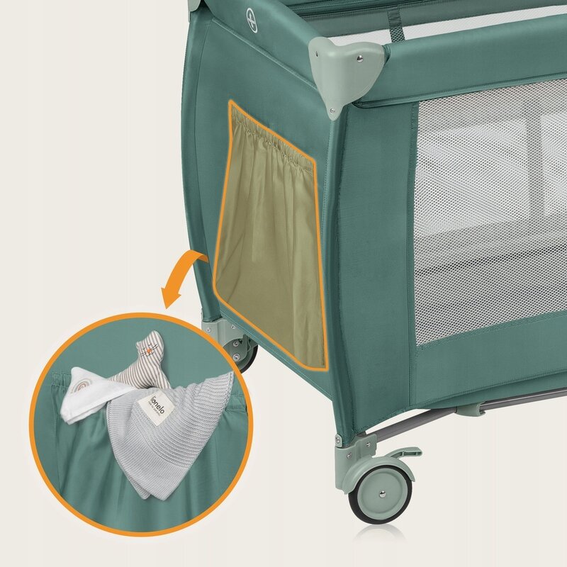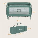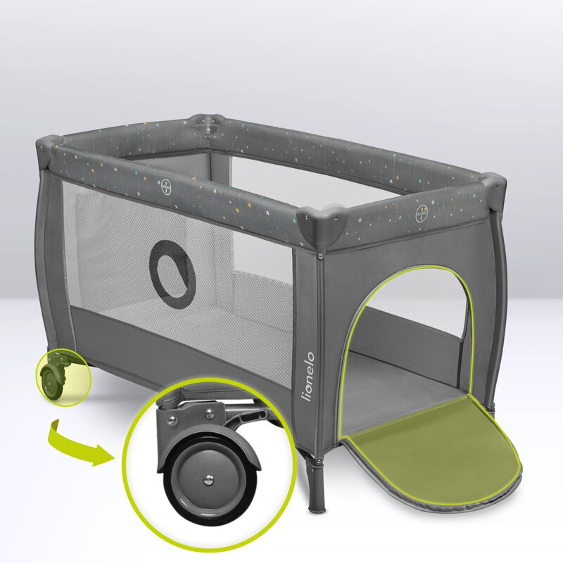 Patut pliabil, Lionelo, Stefi Plus, Cu doua nivele, Cu intrare laterala cu fermoar, 2 roti, 120 x 60 cm, Conform cu standardul european de securitate EN 716, Verde Olive