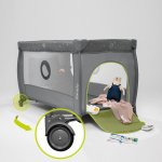 Stefi Plus este potrivit atat pentru uz casnic, cat si pentru calatorii. Se pliaza rapid si poate fi depozitat in geanta cu manere inclusa. Dimensiunile compacte il fac usor de transportat oriunde. Mai mult decat un simplu patut, acesta poate fi folosit si ca tarc – un loc sigur pentru joaca. Rotile confortabile permit mutarea sa cu usurinta.