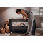 Doua roti prevazute cu frane iti permit sa muti cu usurinta patutul dintr-o camera in alta. Astfel, copilul te poate insoti oriunde, ramanand mereu aproape de tine. Constructia solida din otel si sistemul de blocare LockGuard garanteaza stabilitate si siguranta in utilizare.