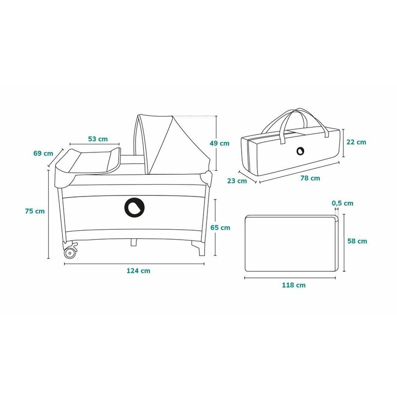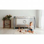 Copertina functionala (cu 3 jucarii captivante) va protejeaza bebelusul de lumina soarelui si de stimuli inutili, iar plasa de tantari inclusa va protejeaza impotriva insectelor. Asadar, patutul de copii poate fi folosit si in aer liber atunci cand temperatura o permite.