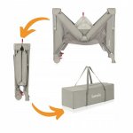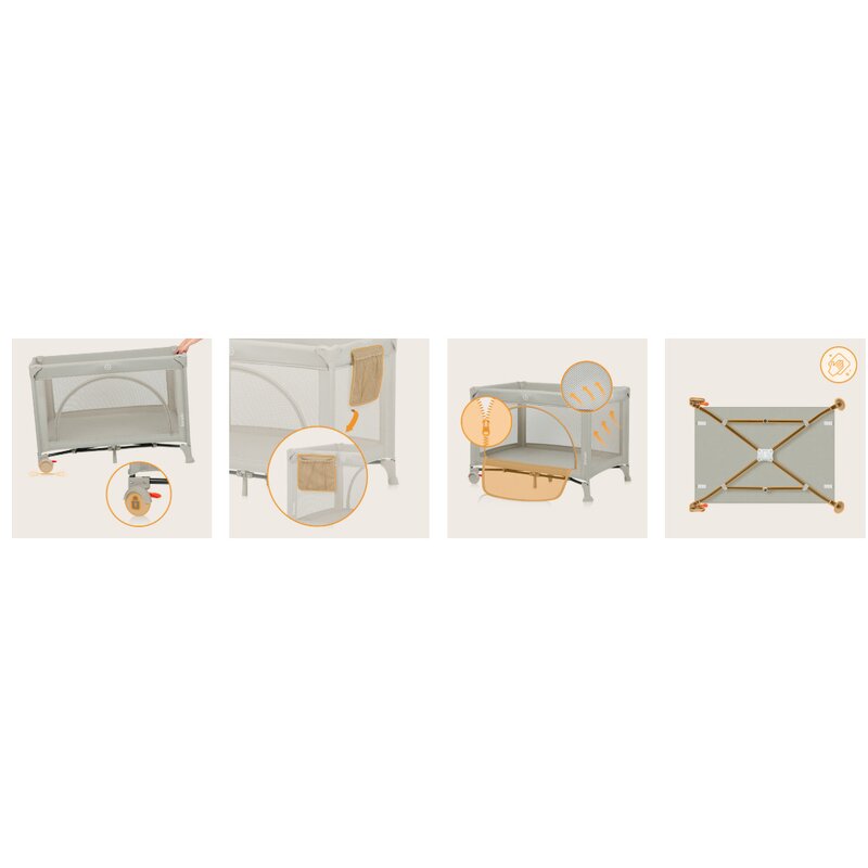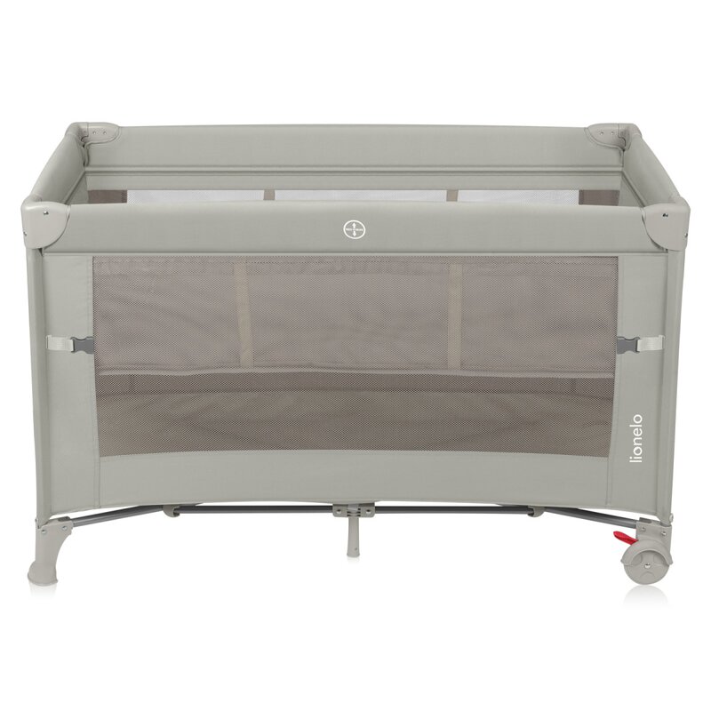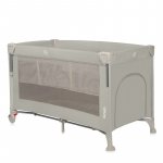 Patut pliabil multifunctional Lionelo Ellen Bej cu laterala culisanta, nivel suplimentar, intrare laterala cu fermoar, 2 roti, saltea pliabila si geanta de transport incluse, 0-36 luni, pana la 15 kg, 120x60 cm