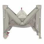Mecanismul special permite plierea rapida a patutului: scoate salteaua si trage de manerul rosu. Structura se pliaza singura, fara efort si fara unelte. Pentru asamblare, intinde partile opuse si apasa manerul rosu spre interior. Cateva miscari si gata!