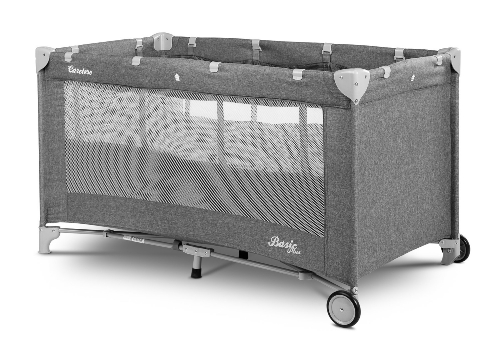 Patut pliabil pentru copii cu doua nivele,roti,fereastra cu fermoar,saltea pliabila si geanta transport incluse Caretero Basic Plus Graphite