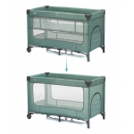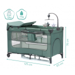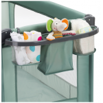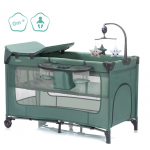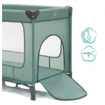 Patut pliabil pentru copii Fillikid Capri Green cu saltea de infasat, organizator, carusel muzical, intrare laterala cu fermoar