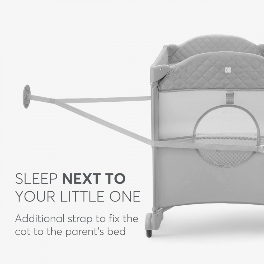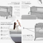 * Foarte practic, poate fi plasat langa patul parintilor datorita lateralei culisante