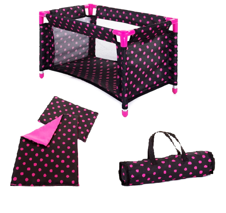 Patut pliabil pentru papusi Doris Bulinute Roz cu pilota,perna si geanta transport incluse,Potrivit pentru papusi de pana la 45 cm