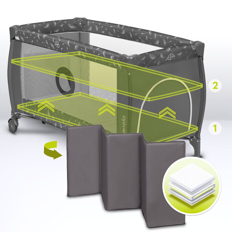 Patut pliant Lionelo cu doua nivele Sven Plus 120x60 cm cu vibratii si melodii grey