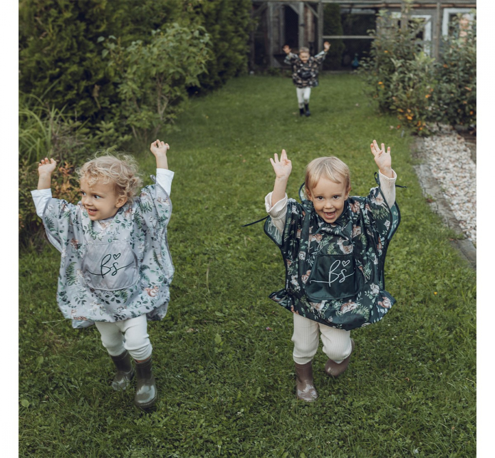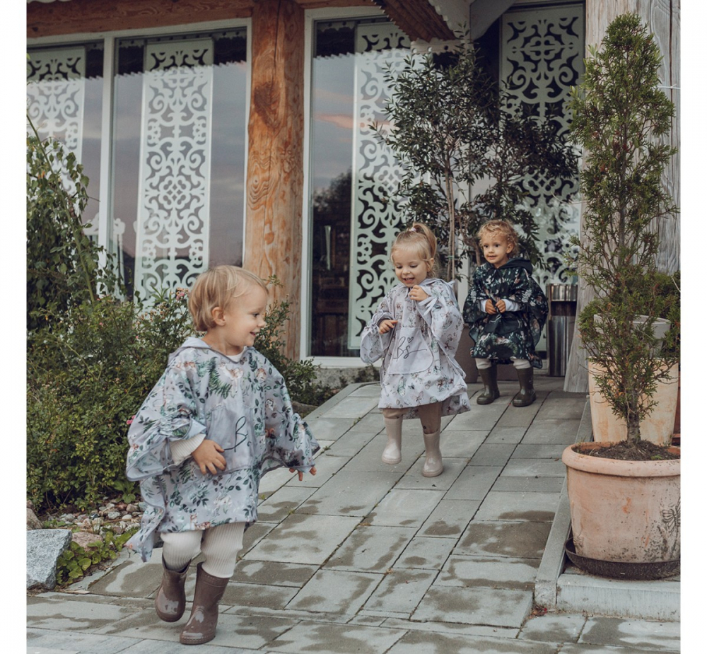 Capsele suplimentare și snururi reglabile la mâneci fac ca poncho-ul să fie potrivit atât pentru copiii mai mici, cât și pentru cei mai mari (testat pe copiii de 8 ani).