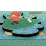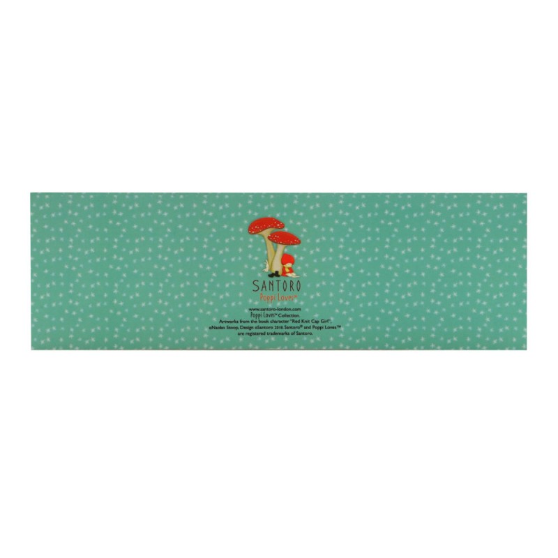 Cu un design aparte, cu micuta Poppi Loves asezata pe un ornament in forma de frunza, vaslind alaturi de prietenul ei White Bunny. In spatele celor doi sunt desenate si cateva ratuste simpatice. In culori de verde smarald, maro si rosu, acest minunat penar de lemn este potrivit pentru a fi oferit cadou celui mai special copil din viata ta. In penar sunt incluse si 12 creioane colorate Santoro, pentru ca cel mic sa inceapa distractia in orice moment. Cutia este cu atat mai speciala cu cat poate fi deschisa prin alunecarea ornamentului imprimat cu Poppi Loves.
