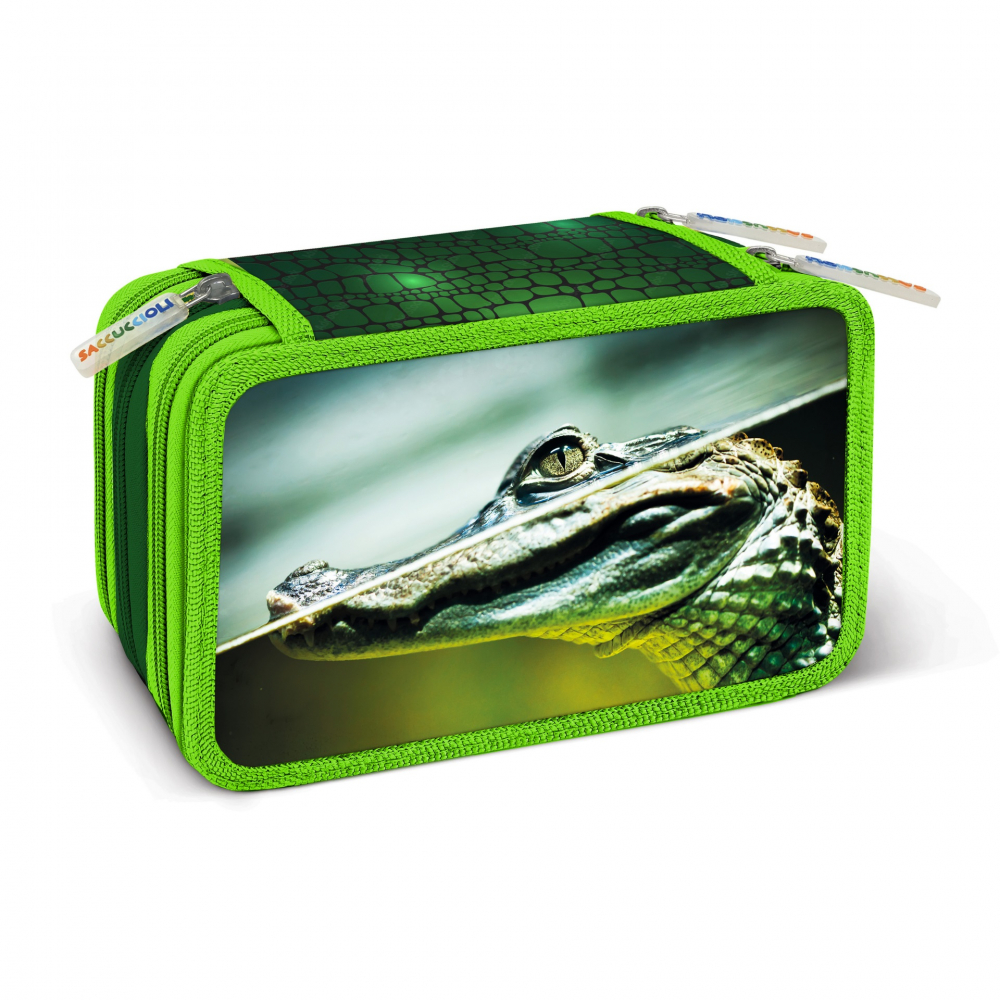 Penar echipat Animale cu 3 fermoare 18 markere si 18 creioane colorate 13x20x6.5 cm