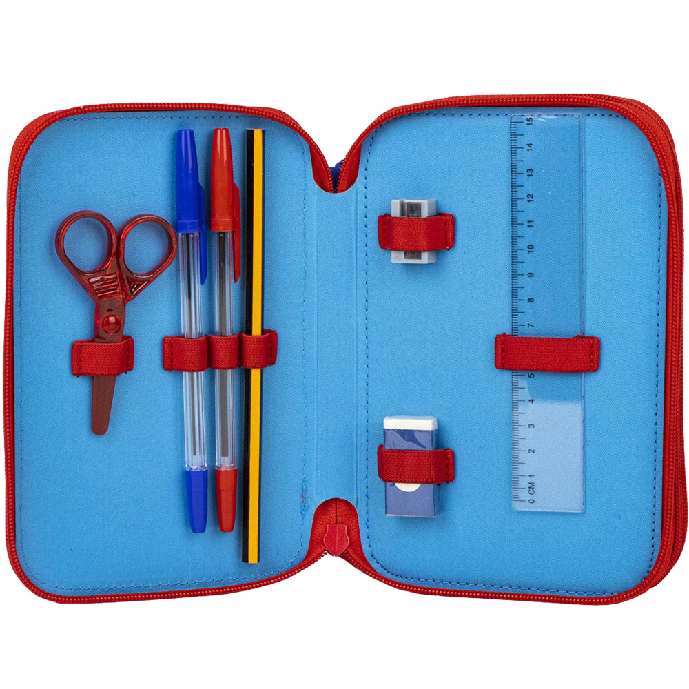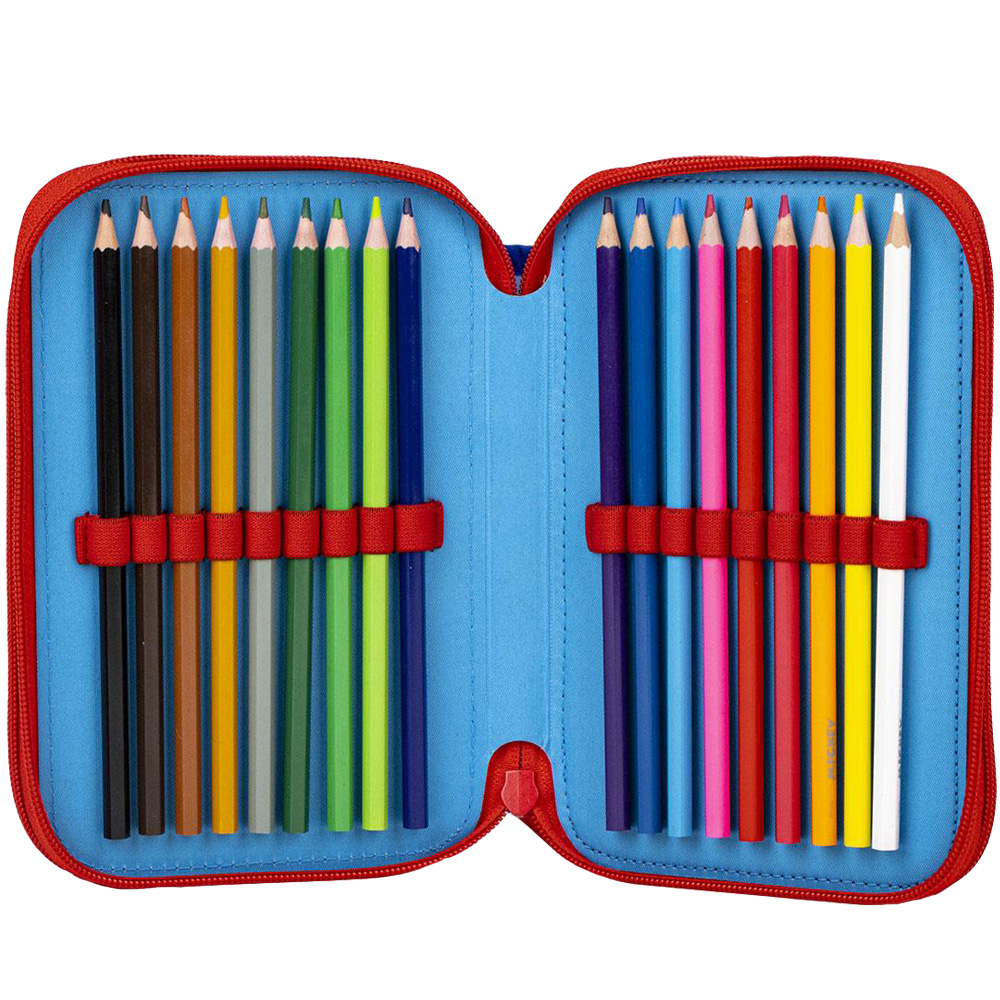- Contine: 18 creioane colorate, 1 creion HB, 18 carioci, rigla 15 cm, radiera, foarfeca, ascutitoare, 2 pixuri (albastru/rosu), orar.