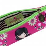 Penarul Gorjuss You Brought me Love de la Santoro se inchide cu ajutorul unui fermoar cu tenta vintage sub forma de medalion inscriptionat cu simpatica fetita din colectia Gorjuss, pastrand continutul in siguranta. Captuseala din interior incanta prin dungile in stilul Santoro.