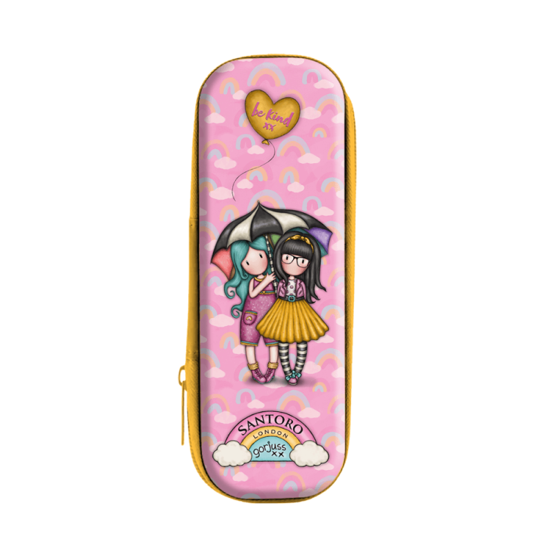 • Penar metalic cu fermoar Gorjuss Be Kind To Each Other poate fi folosit ca un penar interesant sau ca un etui practic si frumos.