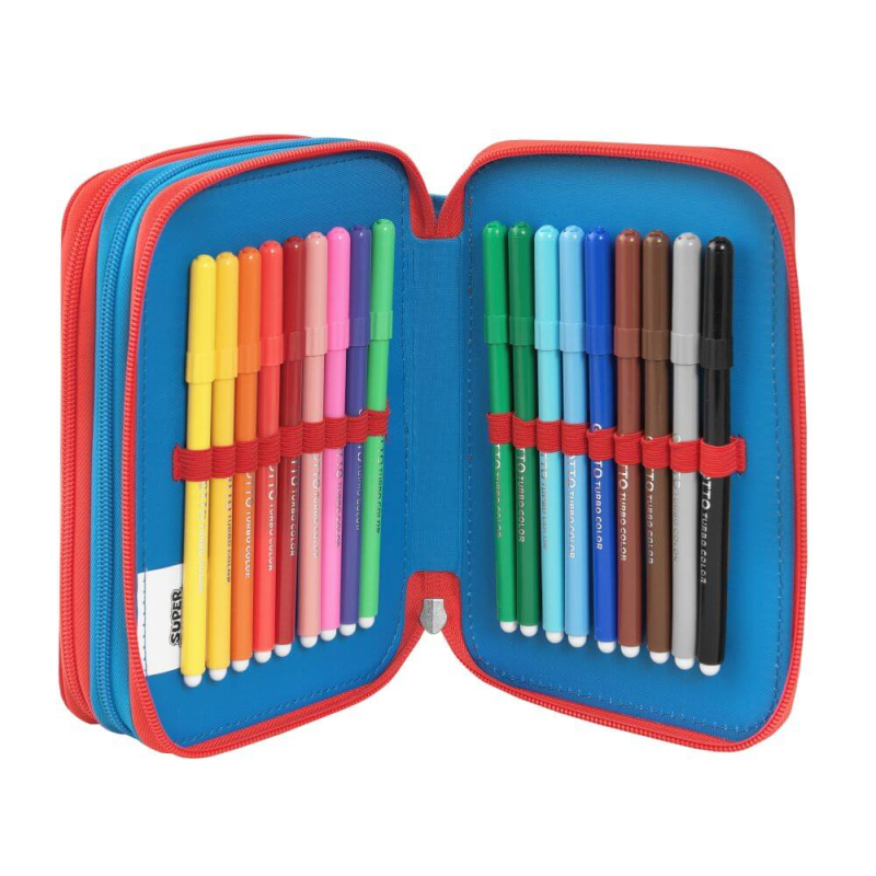 Contine: 44 de piese: guma de sters, creion HB, Pix albastru si rosu, ascutitoare, rigla 15 cm echer, 18 creioane colorate, 18 carioci colorate
