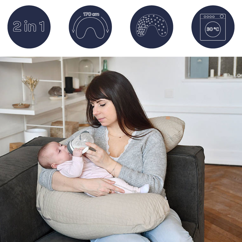Versatila, multifunctionala si cu husa moale, usor detasabila, perna Beaba Big Flopsy te va insoti in timpul sarcinii si dupa nastere, in momentele pretioase ale hranirii bebelusului.