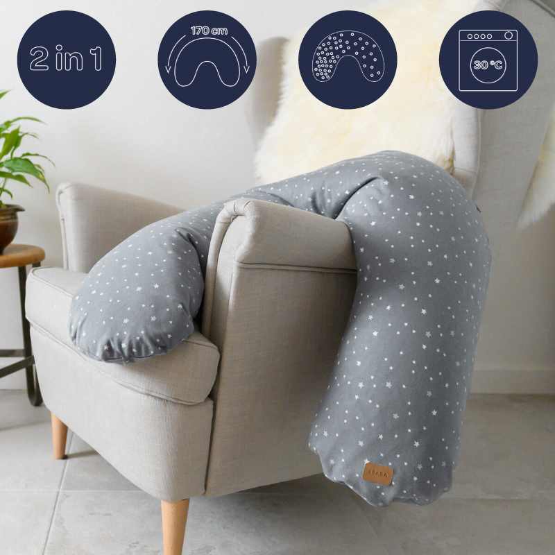 Versatila, multifunctionala si cu husa din jerse usor detasabila, perna Beaba Big Flopsy te va insoti in timpul sarcinii si dupa nastere, in momentele pretioase ale hranirii bebelusului.