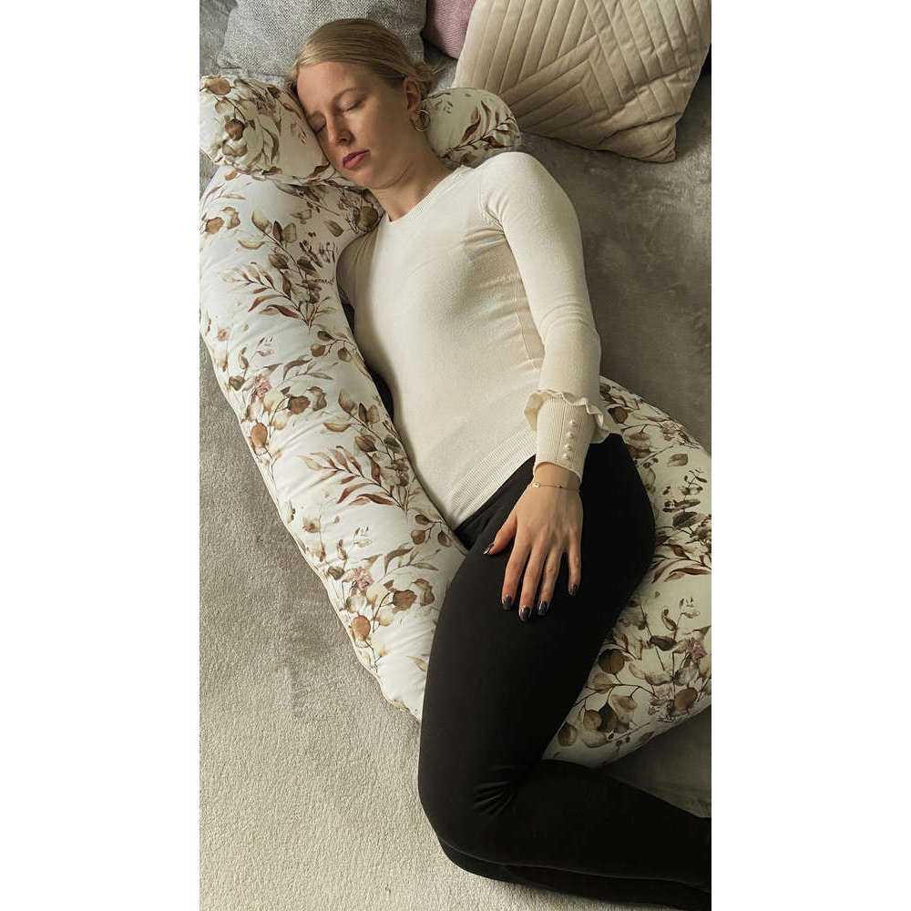 Perna gravide Flumi multifunctionala in forma de C cu husa detasabila bej frunze