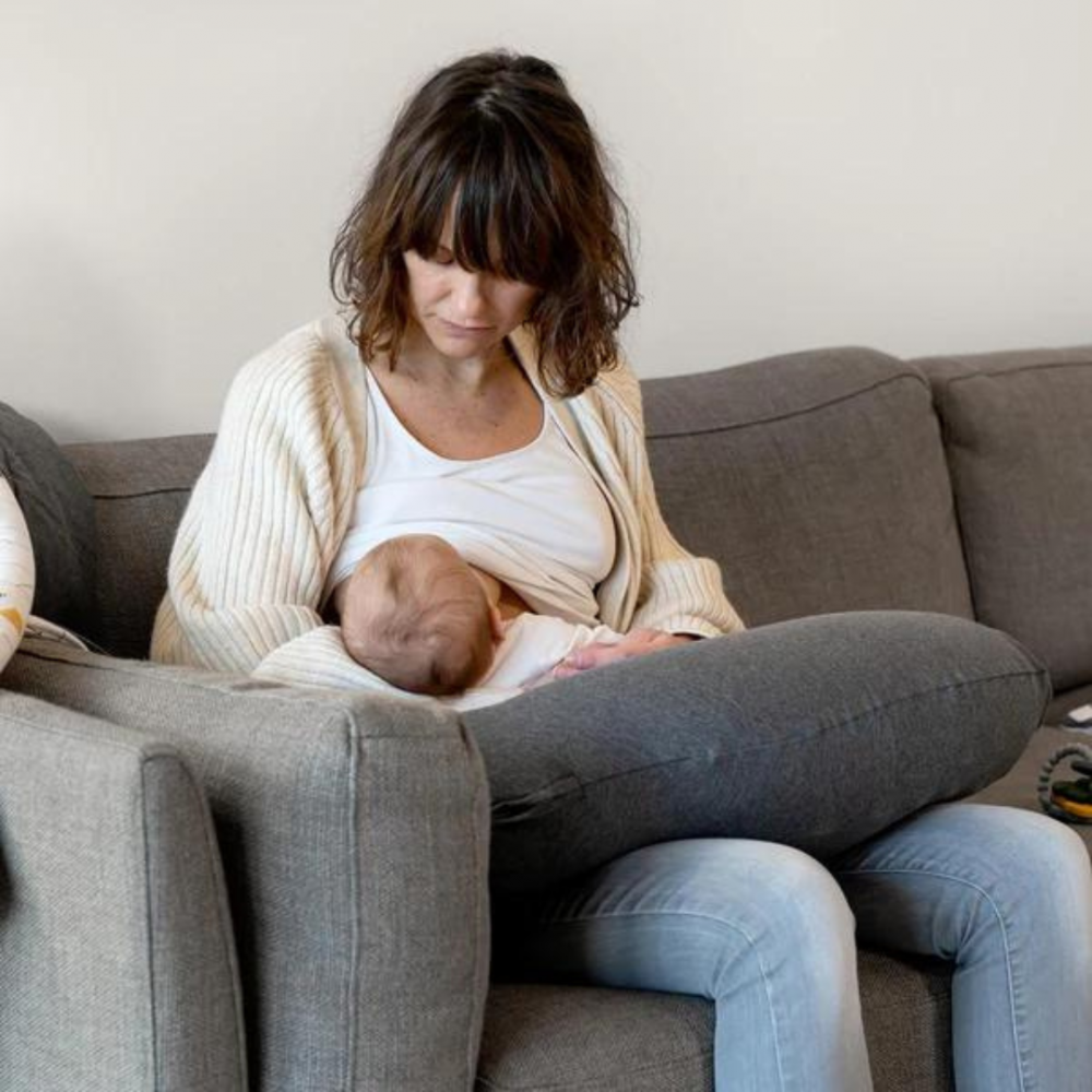 Sprijin in timpul sarcinii, pentru alaptarea la san sau cu biberonul si o perna pentru ca bebelusul sa se joace si sa se odihneasca.