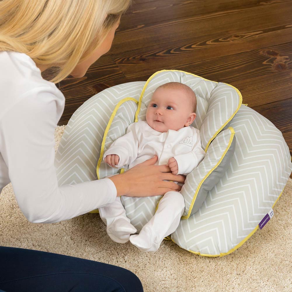 3. Perna impreuna cu reductorul creeaza copilului un confort deosebit. Asezat pe, pernuta reductor si aceasta incadrata in forma scobita a pernei mai mari copilul va sta relaxat. Perna este deosebit de utila si pentru etapa in care bebelusul invata sa stea in sezut, oferindu-i acestuia sprijinul necesar.