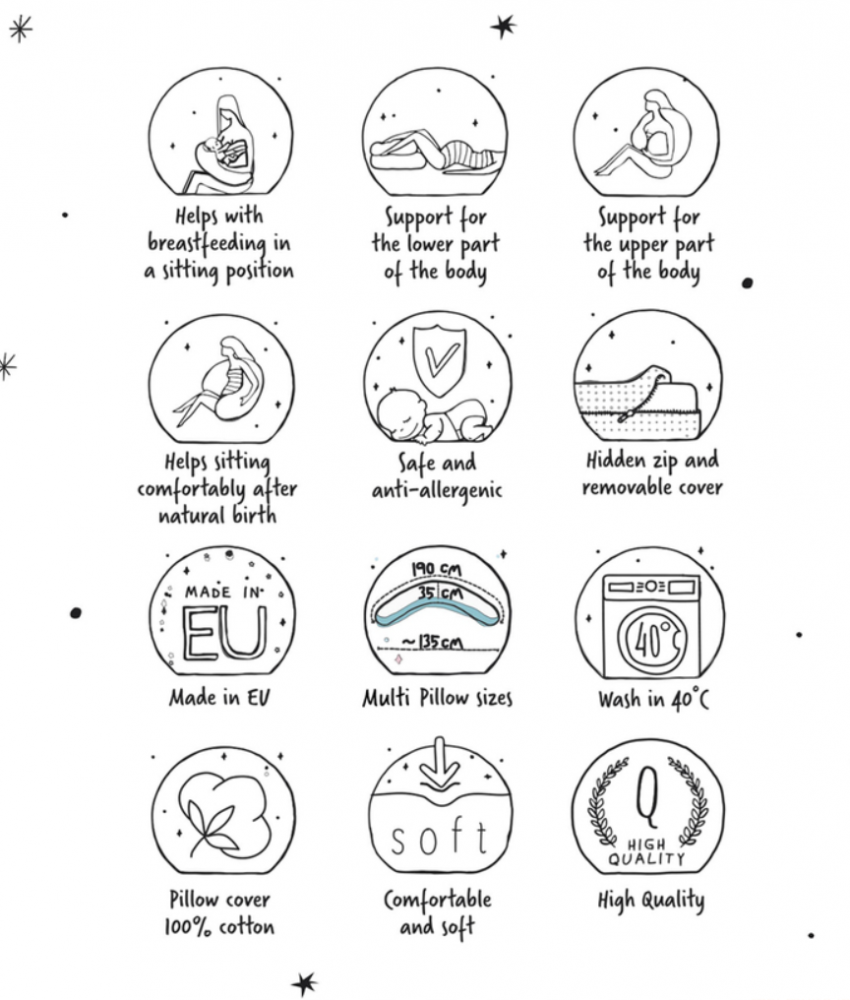 Perna marca Ceba Baby este o perna multifunctionala de dormit si alaptat utila pentru mame, tati si bebelusi.