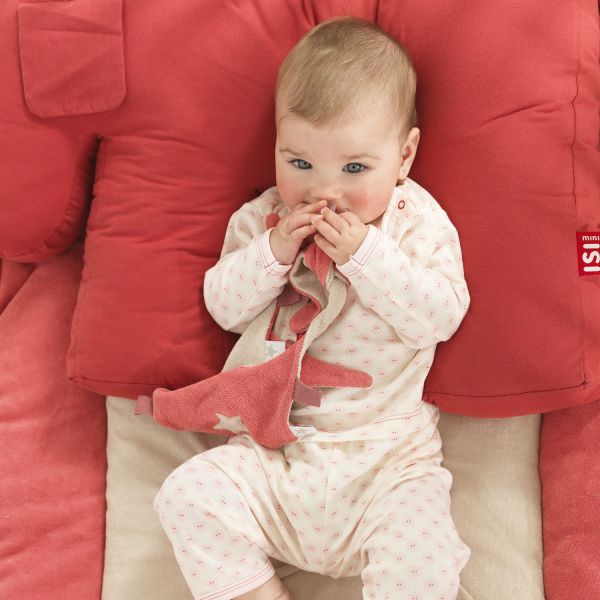 - Ofera suport bebelusului cand acesta sta pe burta si ajuta la intarirea muschilor gatului si spatelui.