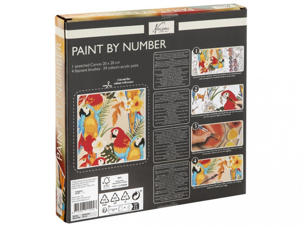 Canva: o panza de 20 x 20 cm deja intinsa pe sasiu, gata pentru a fi pictata, cu un design preimprimat pentru a ghida fiecare pas.