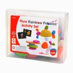 • Fluro Rainbow Pebbles, Activity Set constituie o modalitate distractiva si captivanta pentru dezvoltarea abilitatilor motorii fine si celor senzoriale tactile ale micutilor, care le permite in acelasi timp sa exerseze numararea, sortarea, stivuirea, recunoasterea culorilor si formelor, crearea de modele si designul creativ.
