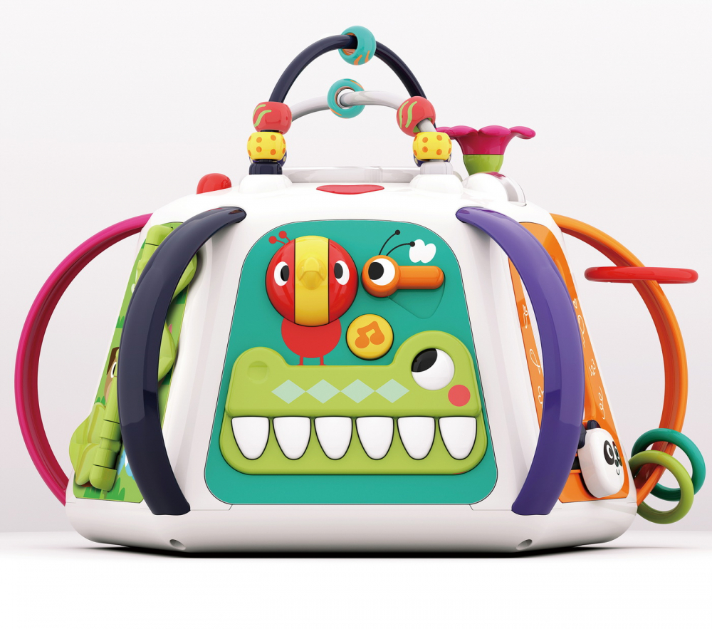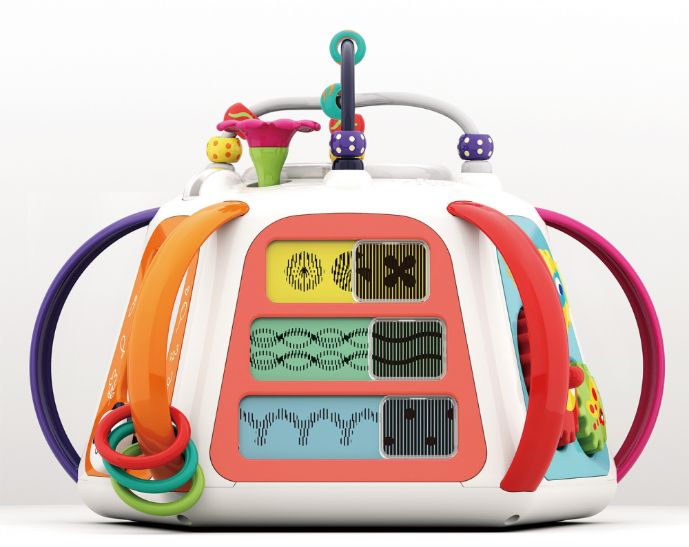 Sunetele si luminile emise sunt menite sa dezvolte perceptia vizuala si auditiva si coordonarea dintre maini si ochi a copilului dumneavoastra.