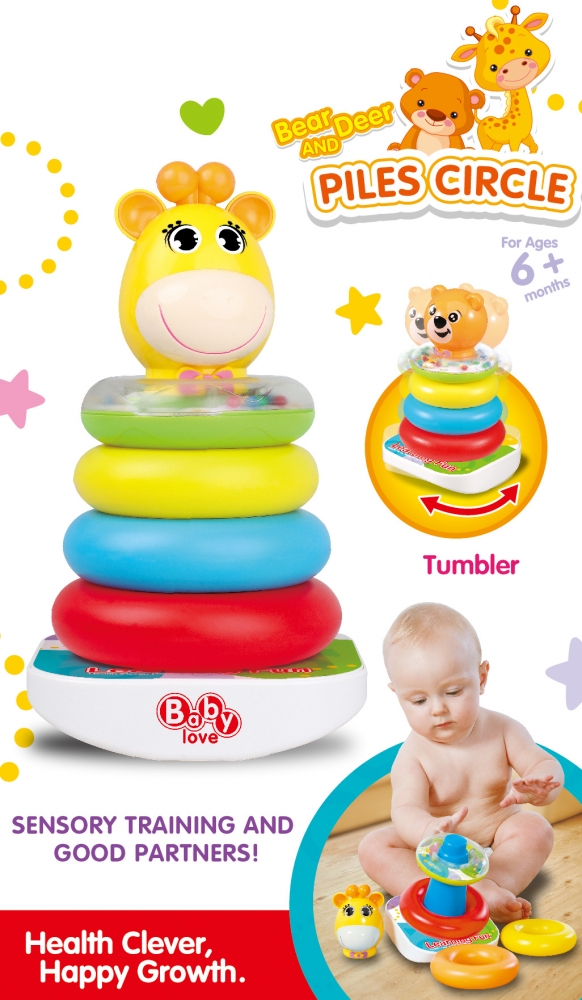 * Piramida Bear and Deer Rings are patru inele special concepute pentru a fi usor de manevrat de catre bebelus. Inelul superior are in interior bilute ce se misca pe o suprafata colorata, astfel bebelusul este atras de zornaitul bilutelor
