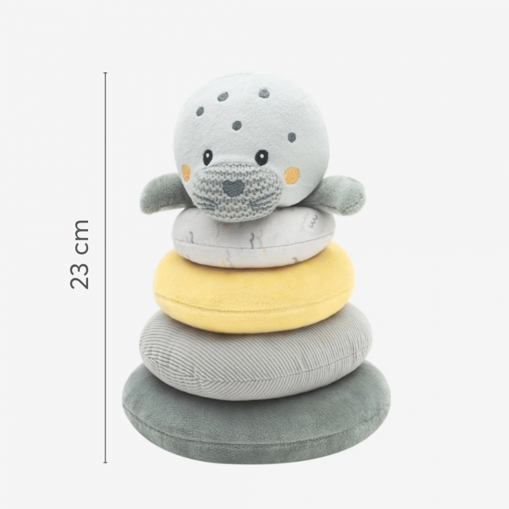 Piramida de stivuit pentru bebelusi KikkaBoo Seally din plus,cu 4 inele de marimi diferite, 23cm
