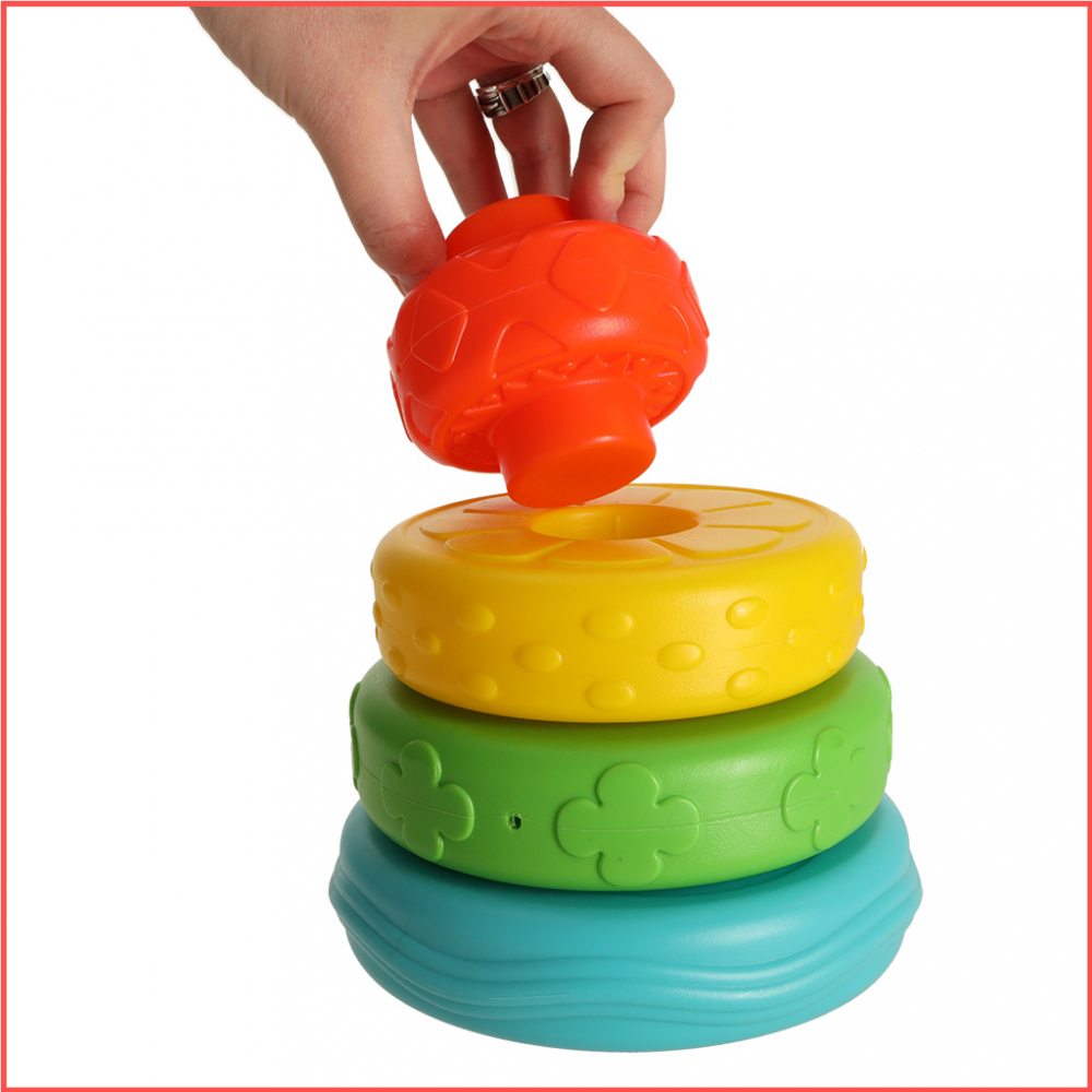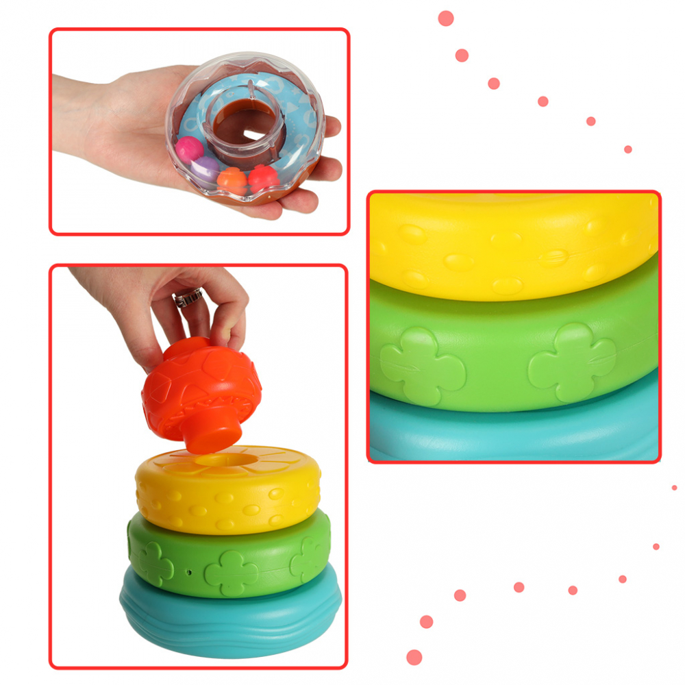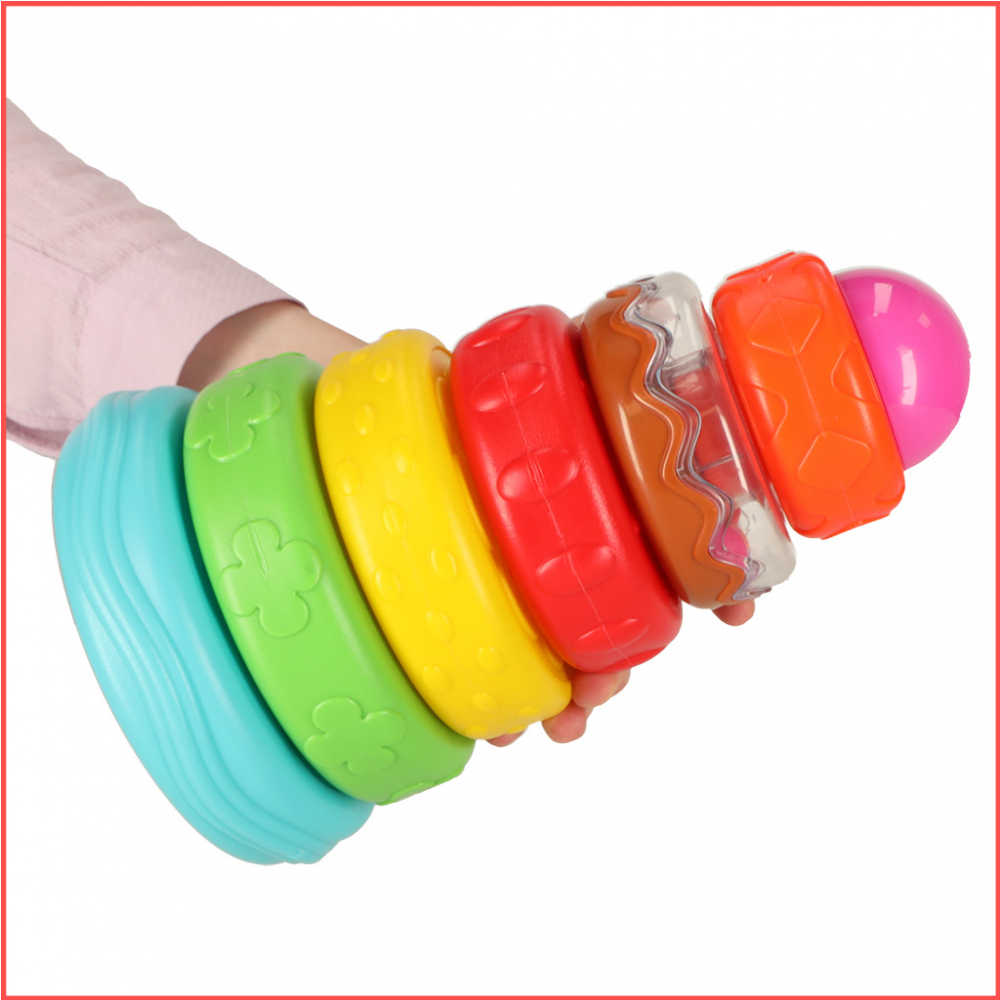 Aceasta jucarie ''Piramida inelelor colorate'', poate fi un antrenament excelent al simturilor vazuale si tactile ale micutilor fascinati de echilibru.