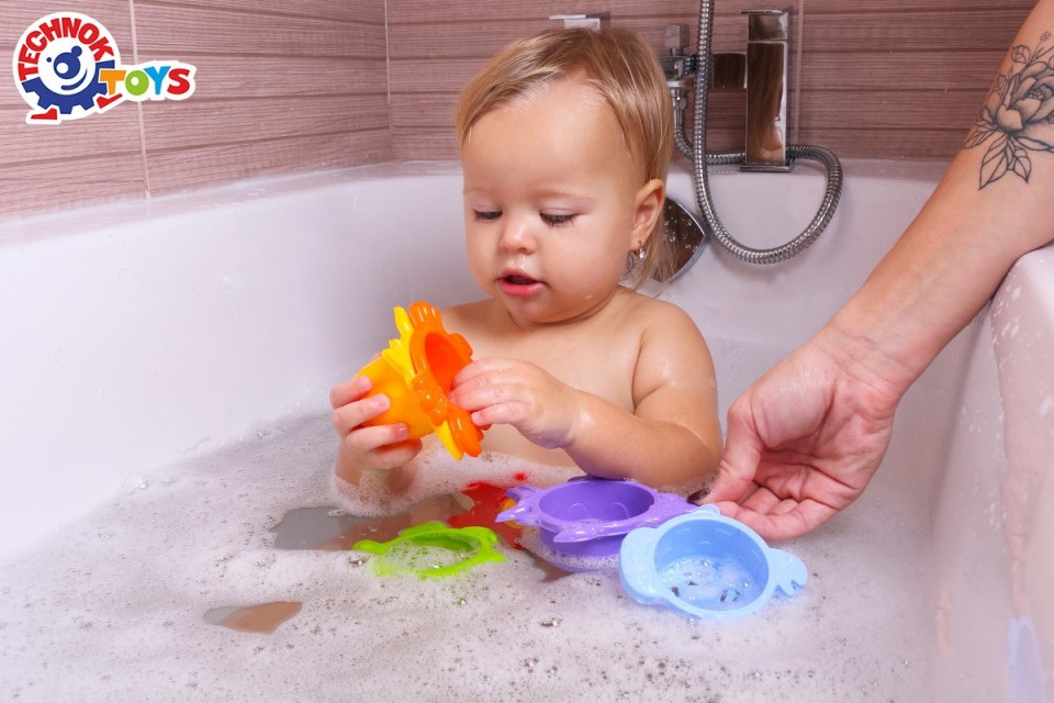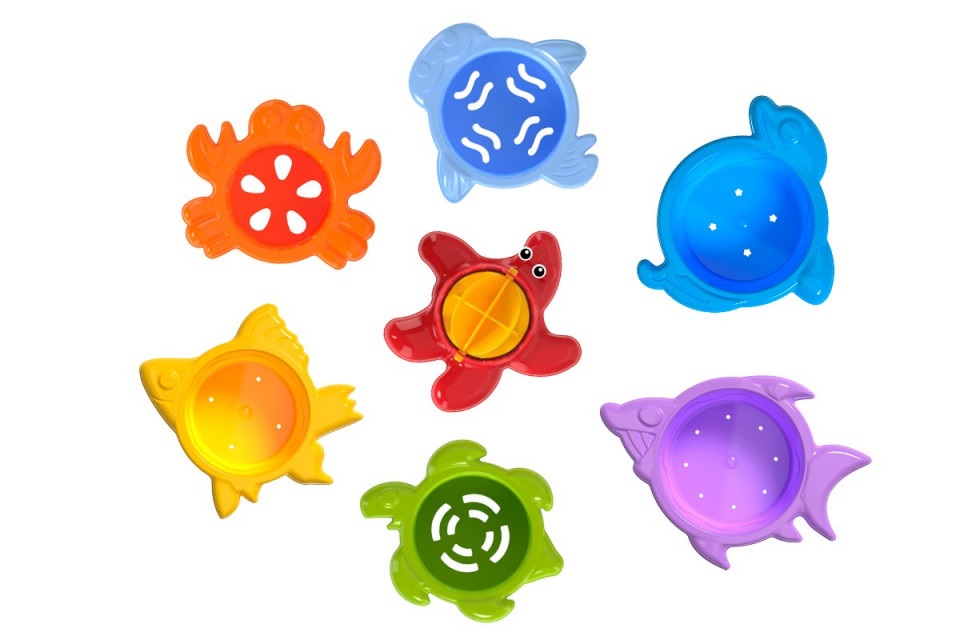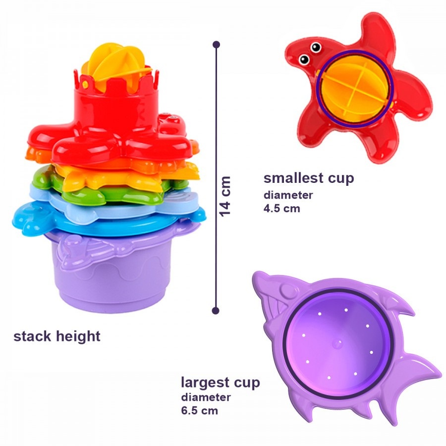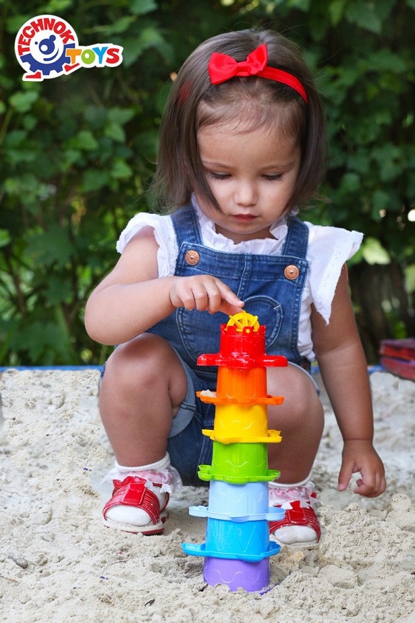 Piramida educativa 3 in 1 pentru copii Technok cu 7 piese de stivuire,utilizare multipla jucarii de baie/nisip Multicolor