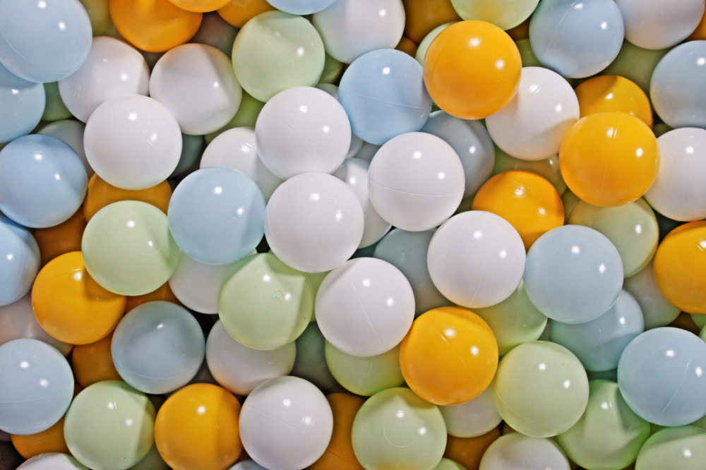 Conținut: 200 bile sigure CE (diametru 7 cm, culori pastelate alb, gold, mint si roz)