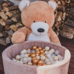 Piscina uscata cu 250 de bile MeowBaby Teddy Bear 90x30 cm Catifea Bej