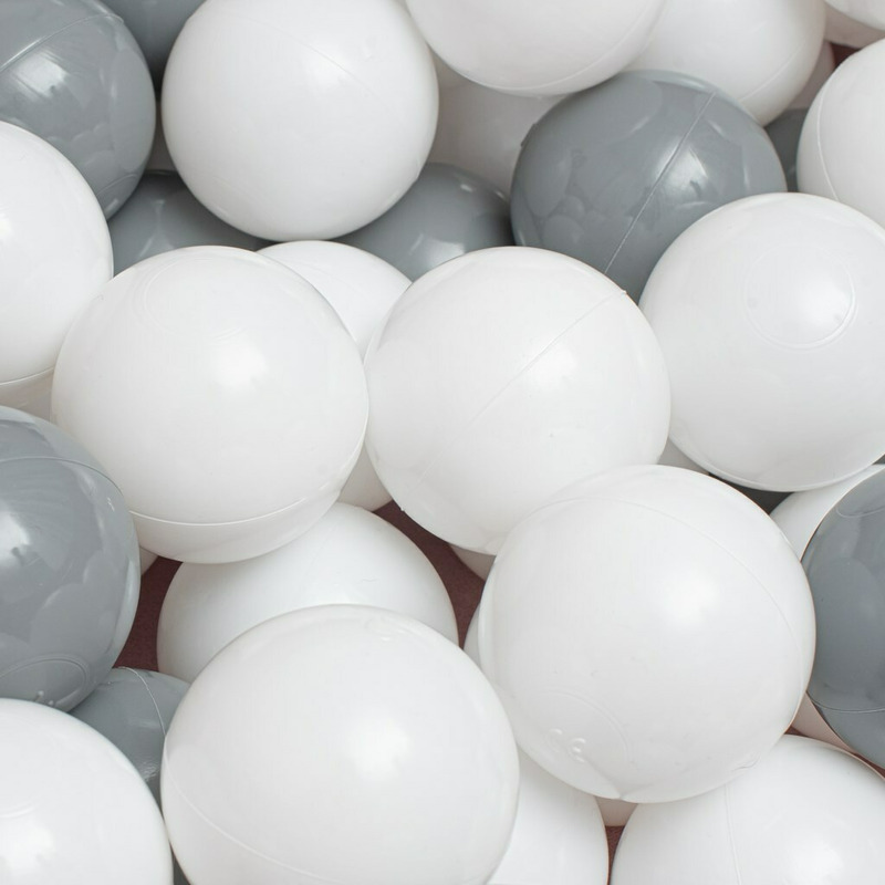 Intr-un singur pachet exista 150 de bucati de bile certificate din plastic in culori albe si gri.