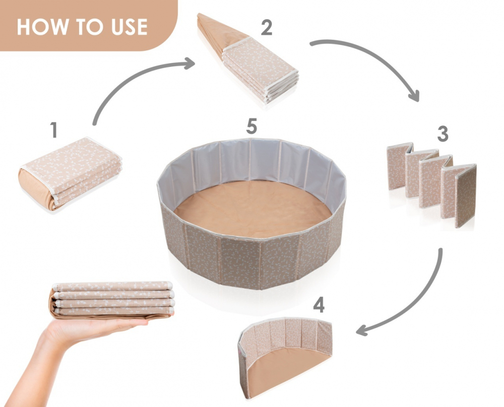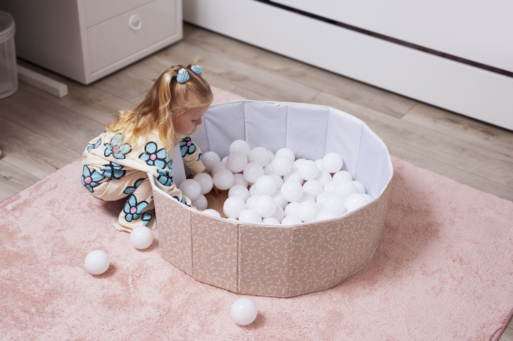 Piscina uscata pliabila cu 100 bile albe BabyJem Somon 30x83 cm